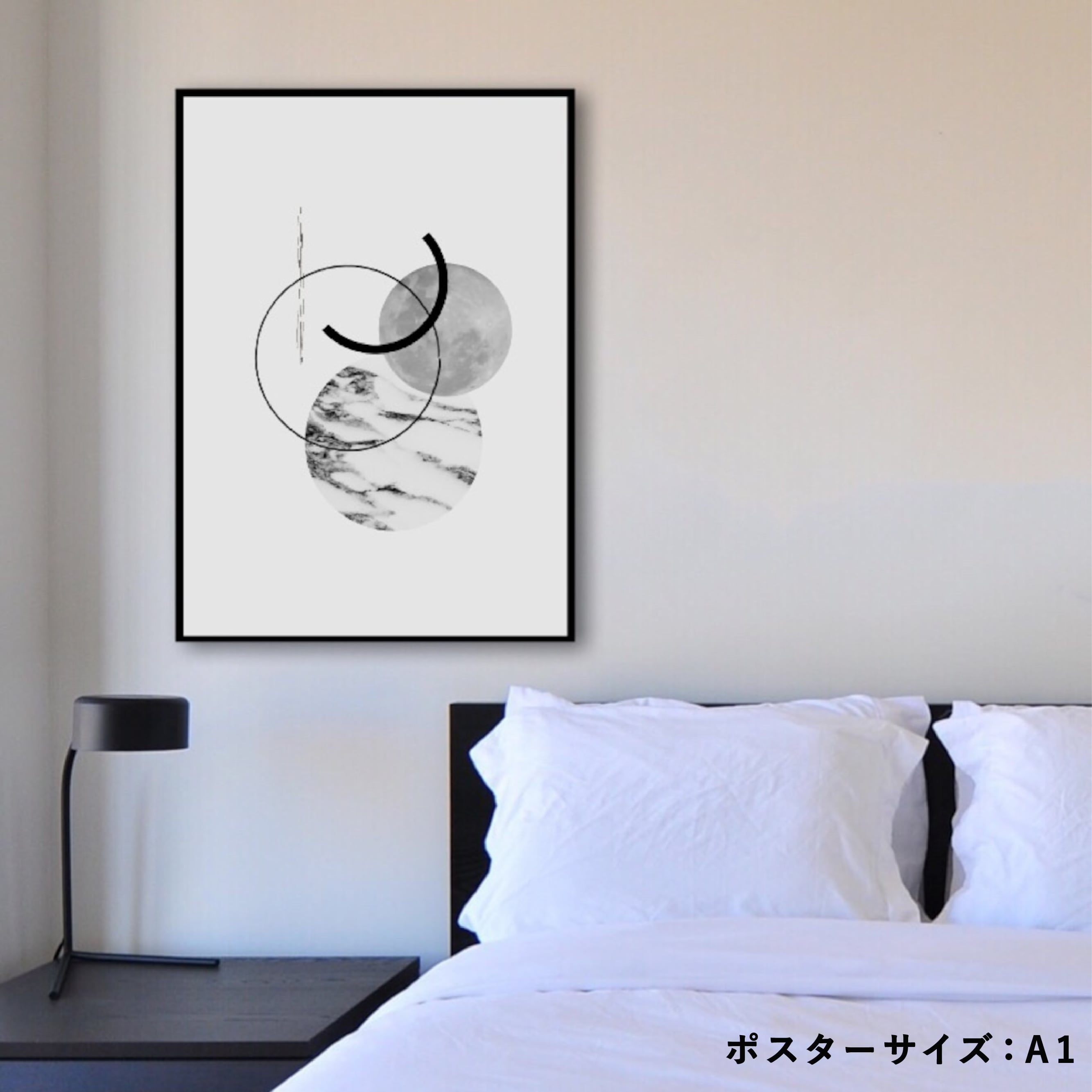 幾何学の図形を合わせたスタイリッシュなポスター。モノトーンのかっこいいお部屋にぴったりです。