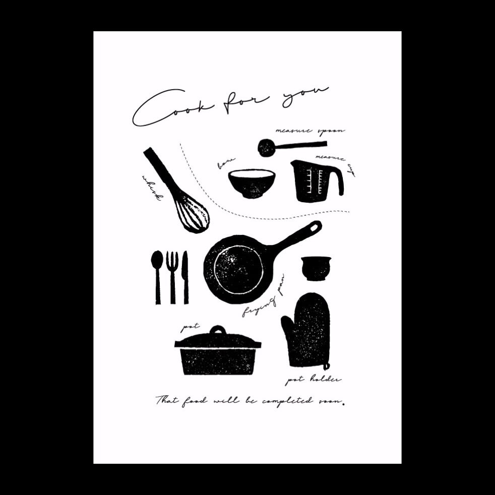 料理が楽しくなるようなツールがたくさん並んでいる楽しげなポスター。