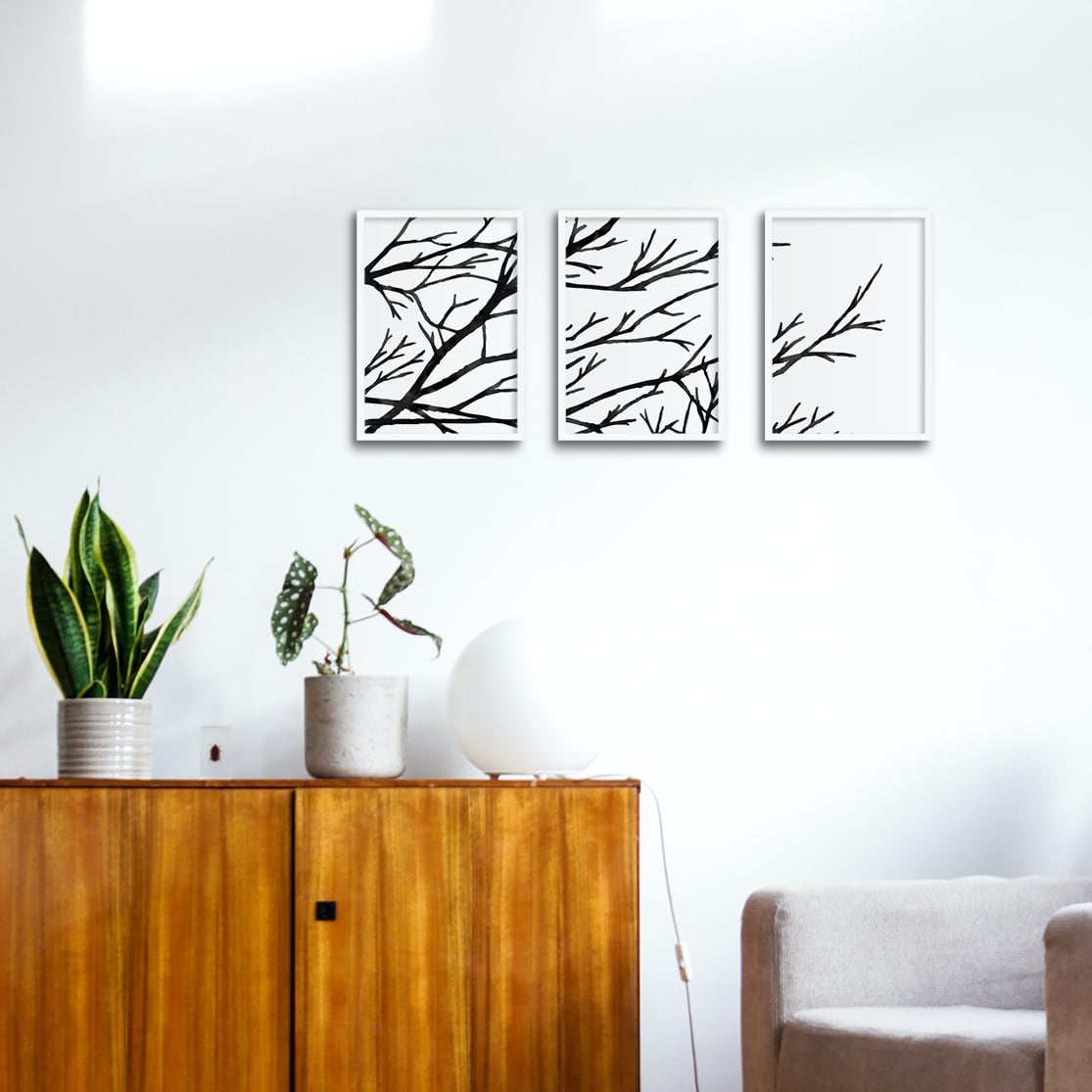 シンプルな枝のイラストはナチュラルな雰囲気で、モノトーンでもかっこよくなりすぎず、飾りやすいデザインになっています。