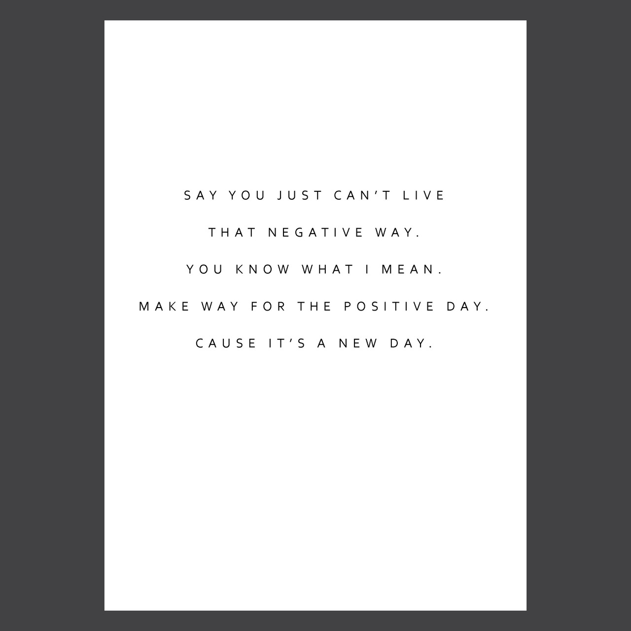 Say you just can’t live that negative way. You know what I mean. Make way for the positive day. Cause it’s a new day.